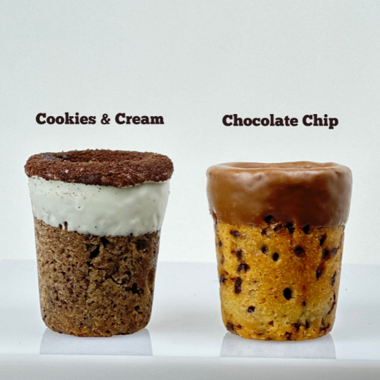 Our famous cookies have been transformed into shot cups and coated with a layer of chocolate to prevent leaks.